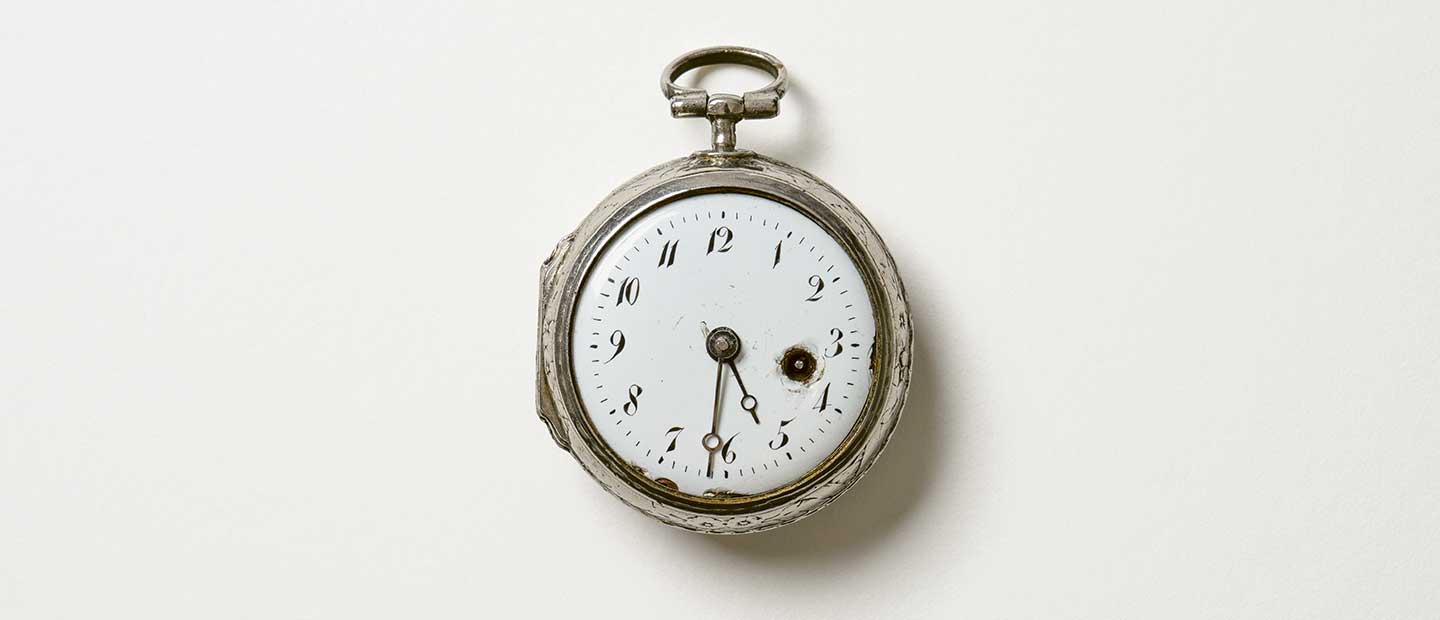 Including when we look back at the life of Rudolf Hauschka: he was able to take the time to embark on a long journey overseas to Australia. But Hauschka was also able to structure his time every day in a way that balanced his work and other interests. If we are mindful of how we use our time, it becomes full of possibilities. Rudolf Hauschka’s relationship with time is also reflected in the way he measured it. His silver, handmade spindle clock from the 18th century is ornately decorated with an elegantly designed clock face. Its worn condition is a testament to its frequent use. It required attention, needing to be regularly wound by hand. We can’t stop the passage of time. But we can show it as much appreciation and respect as Rudolf Hauschka showed his watch. And this way, time becomes richer.